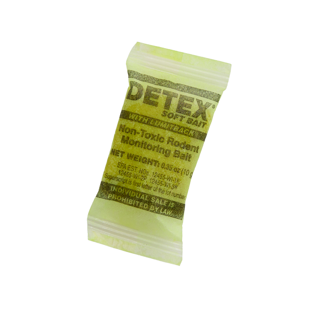 Detex Soft Bait bevat Lumitrack, een niet-giftige stof die de uitwerpselen van knaagdieren doet oplichten door gebruik van een UV lamp. Detex Soft Bait zit in handige sachets van 10 gram, wat het een ideaal monitoring systeem maakt in alle omstandigheden. Schimmel-, warmte- en koudebestendig. Hoge aantrekkingskracht.