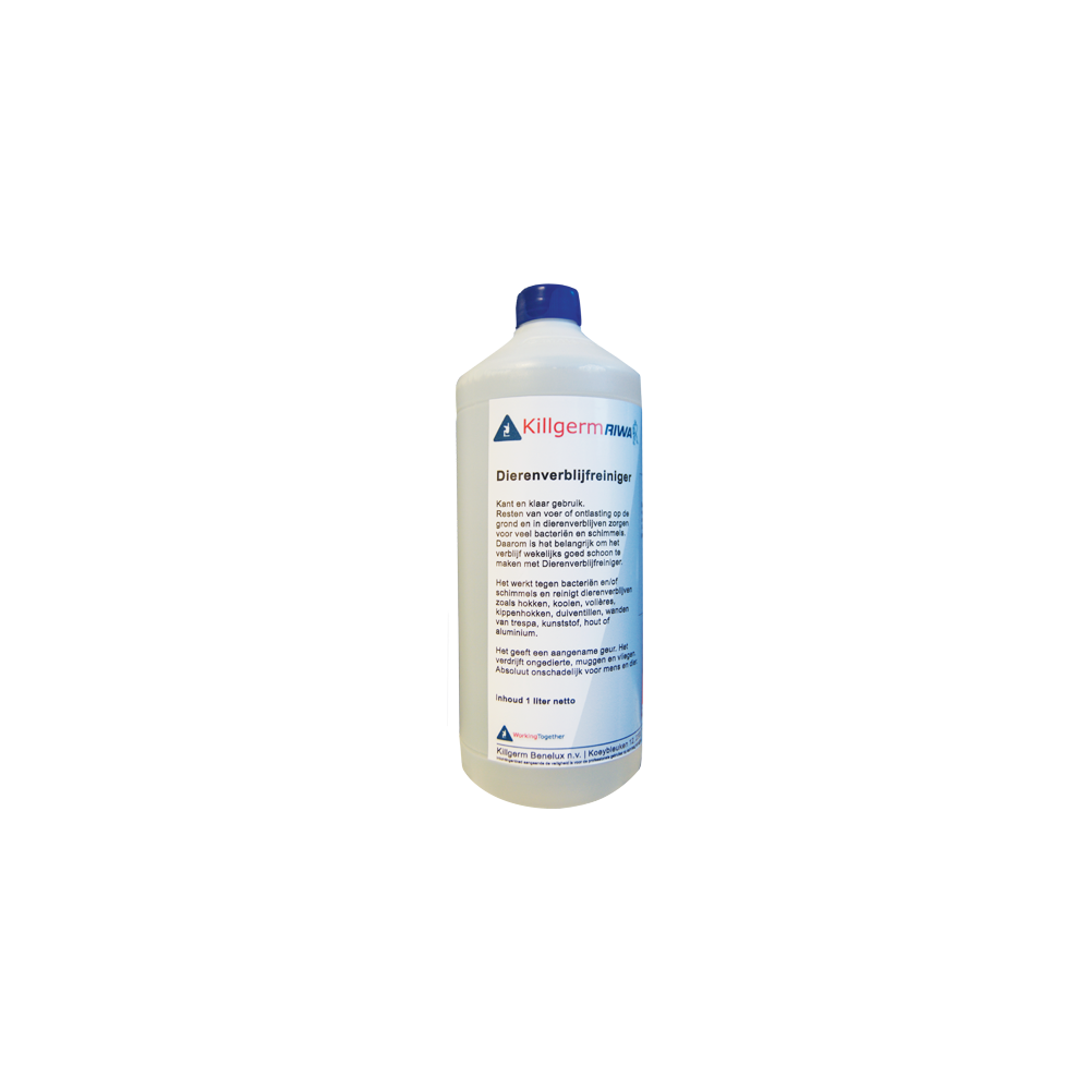 Reiniger voor kant-en-klaar gebruik. Resten van voer of ontlasting op de grond en in dierenverblijven zorgen Daarom is het belangrijk om het verblijf wekelijks goed schoon te maken met Dierenverblijfreiniger. Het werkt tegen bacteriën en/of schimmels en reinigt dierenverblijven zoals hokken, kooien, volières, kippenhokken, duiventillen, wanden van trespa, kunststof, hout of aluminium. Het geeft een aangename geur en verdrijft ongedierte, muggen en vliegen. Absoluut onschadelijk voor mens en dier.